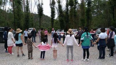 到達(dá)目的地下車后,在6位小朋友活躍的感染下,我們大孩子們也顯得蠢蠢欲動(dòng),按捺不住心中的喜悅,好奇地等待我們接下來(lái)的行程活動(dòng)。穿梭在那桃子成熟的山林里,大家在主教的帶領(lǐng)下繼續(xù)行走,紛紛議論著,時(shí)不時(shí)跑出隊(duì)伍去“偷摘”樹(shù)上紅彤彤的桃子、金燦燦的李子。午餐之前,主教首先詳細(xì)講解了活動(dòng)要領(lǐng)跟細(xì)節(jié),并通過(guò)牽手圍圓圈、賣湯圓等幾個(gè)緊扣“追憶童年時(shí)光,找回天真笑臉”主題活動(dòng)的小游戲展開(kāi)熱身活動(dòng),調(diào)動(dòng)學(xué)員的活動(dòng)積極性及團(tuán)結(jié)意識(shí),大家都沉浸在活動(dòng)的喜悅中,享受著這緊張而簡(jiǎn)單卻又不留神容易出錯(cuò)的小游戲里。